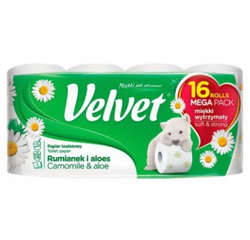 Velvet to lider w produkcji papierów toaletowych, ręczników papierowych, chusteczek higienicznych i nawilżanych, które łączą wysoką jakość, miękkość i wytrzymałość. Marka znana jest z innowacyjnych rozwiązań i ekologicznego podejścia, oferując produkty idealne do domu, biura i hotelu.