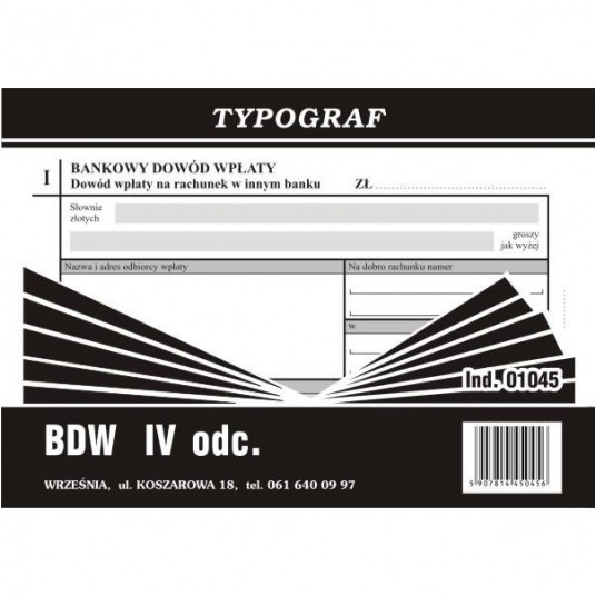 Bankowy dowód wpłaty 4 częsci, Typograf