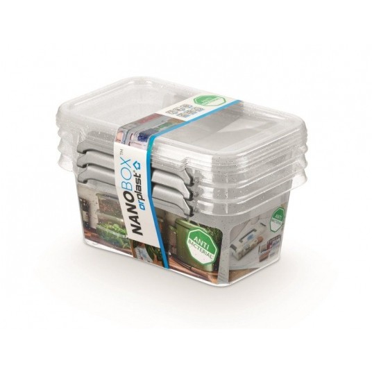 - Nanobox jest pojemnikiem antybakteryjnym - w całym pojemniku oraz klipsach i rączkach umieszczone zostały mikrocząstki srebra, dzięki temu zamykany pojemnik jest bardziej bezpieczny dla zdrowia oraz pomaga zachować świeżość i czystość jego zawartości - aktywne działanie cząsteczek srebra przeciw drobnoustrojom ujawnia się za każdym razem gdy używasz Nanobox, a więc wtedy, kiedy poprzez bezpośredni kontakt (dotyk) umieszczasz na nim bakterie lub grzyby