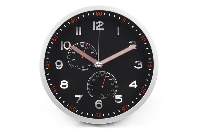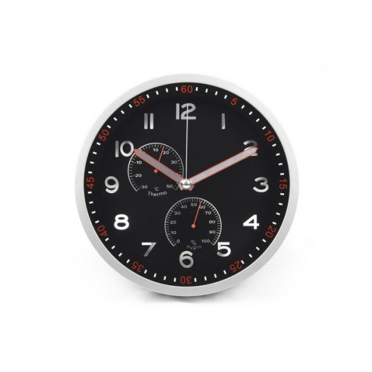 Zegar ścienny ARGO PSP30, srebrna rama, czarna tarcza