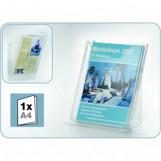 - półka na ulotki A4 - budowa nóżek umożliwia stosowanie półki w wersji na biurko lub na ścianę - istnieje możliwość rozbudowy zestawu o kolejne półki poprzez moduł rozszerzający (L1372)