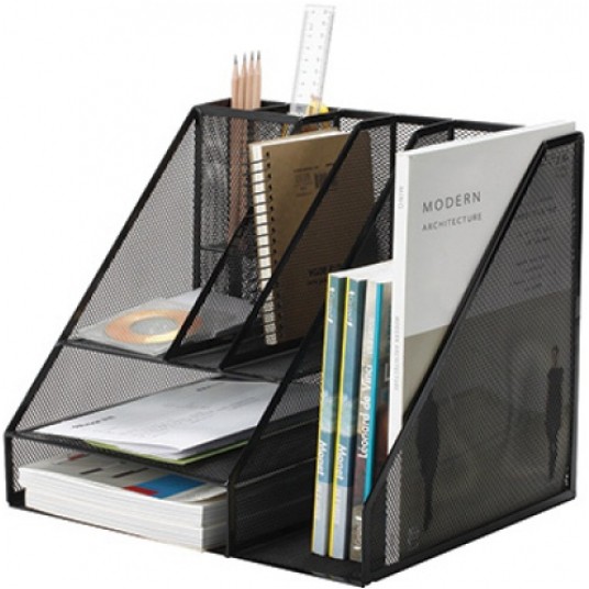 Organizer z przybornikiem Q-CONNECT Office Set, metalowy, A4, czarny