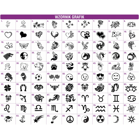 Możemy wygrawerować Twój pomysł na grawer lub możesz skorzystać z naszych czcionek i przykładowych obrazków.