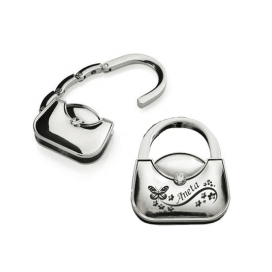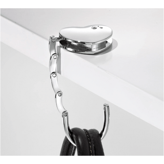 Metalowy, składany wieszak na torebkę w kształcie torebki stanowi idealny prezent dla drugiej połówki na Walentynki i nie tylko!