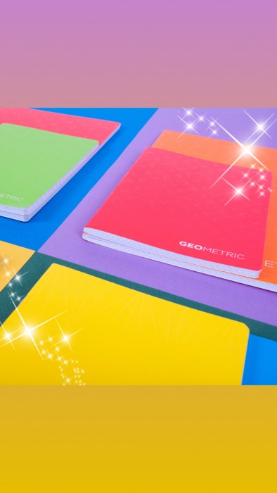 Eleganckie zeszyty zserii Geometric w mocnych nasyconych kolorach.