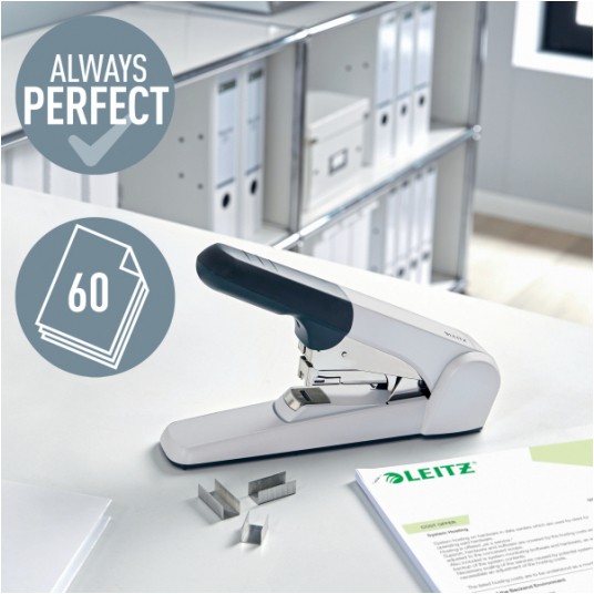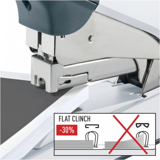 - ergonomiczne ramię zapewnia zszywanie dużego pliku kartek bez wysiłku - system płaskiego zaginania zszywek, zmiejsza o 30% objętość zszytych dokumentów, dzięki czemu więcej dokumentów zmieścisz w segregatorze - antypoślizgowa podstawa z tworzywa sztucznego zapewnia stabilność i chroni powierzchnię przed zarysowaniem - model 5553 FC wyposażony w okienko kontrolne sygnalizujące brak zszywek - zszywa do 60 kartek zszywkami 25/10 (5552 FC), 120 kartek zszywkami 23/15XL (5553 FC) - w komplecie zszywki - głębokość wsuwania kartek: 56 mm - ładowany od przodu - certyfikat bezpieczeństwa GS - 10 lat gwarancji przy użyciu zszywek Leitz