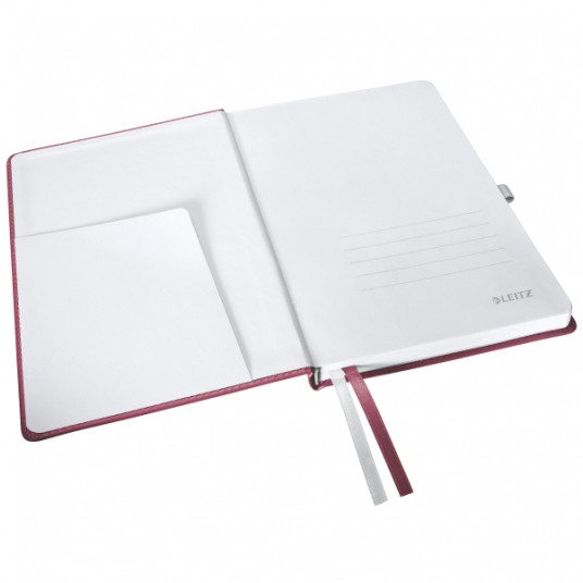 - notatnik o uznanej jakości Leitz Premium - nowoczesne wzornictwo, atrakcyjne szczotkowane wykończenie i wyrafinowane kolory - zintegrowana, poszerzana kieszeń na wewnętrznej stronie przedniej i tylnej okładki umożliwia szybki dostęp do luźnych kartek i drobiazgów - 80 kartek wysokiej jakości papieru w kolorze kości słoniowej, z certyfikatem FSC® i gramaturą 100 g/m2 - format A5, kratka