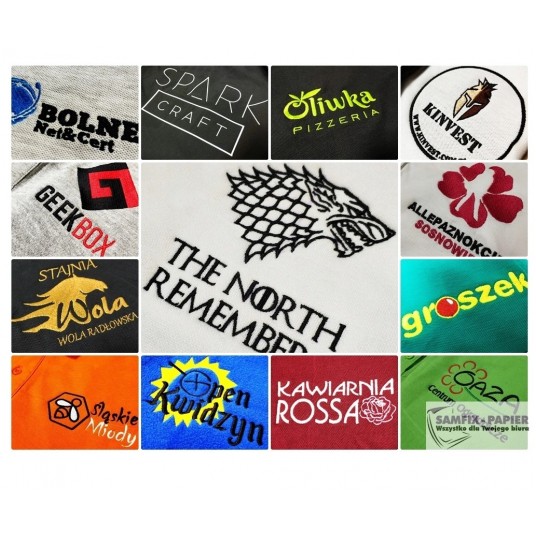 Po dokonaniu zakupu prosimy dostarczyć nam logo i/lub treść do wyhaftowania* na adres mailowy (grafik@samfix.com.pl) w formacie JPG lub pdf, w jak najwyższej rozdzielczości. Po zakupie przygotowujemy projekt oraz dopasowujemy kolory nici.