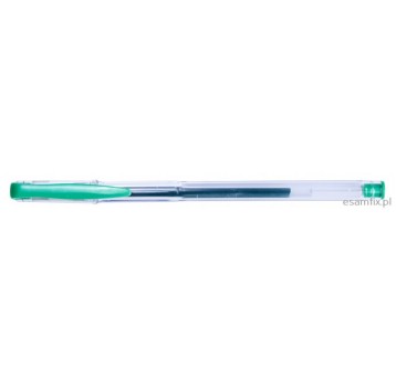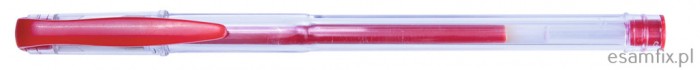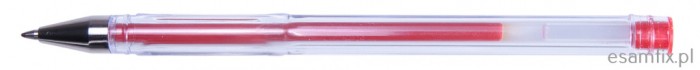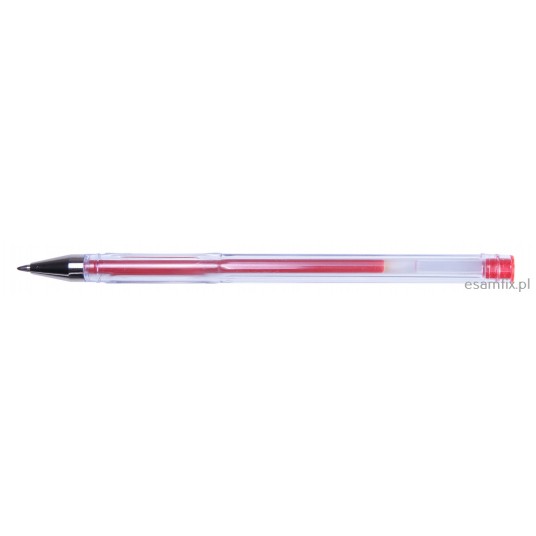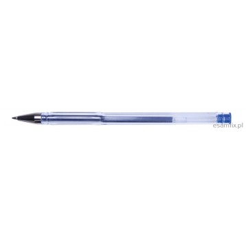 klasyczny długopis z wymiennym wkładem zawiera atrament żelowy transparentna obudowa pozwala kontrolować stan wkładu ze skuwką i klipsem w kolorze tuszu tusz wodoodporny i nieblaknący kulka z mosiądzu niklowanego (BNP) średnica kulki: 0,5mm grubość linii pisania: ok. 0,5mm długość linii pisania: ok. 300m
