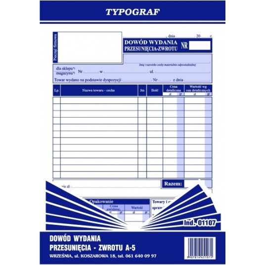 Dowód wydania - przesunięcia - zwrotu Typograf A5