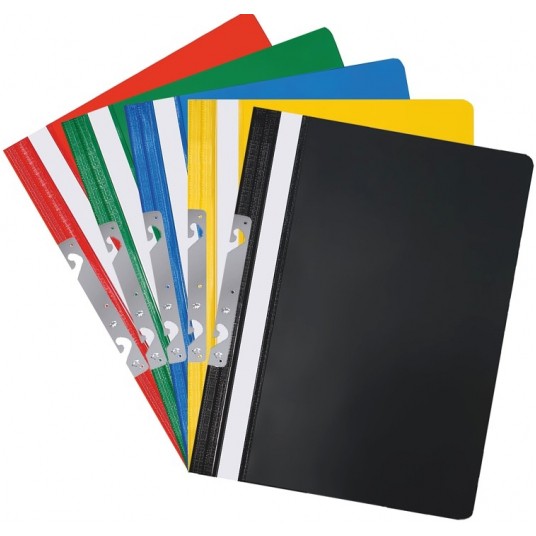 Skoroszyt twardy z metalową zawieszką.