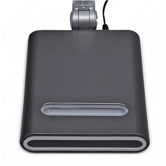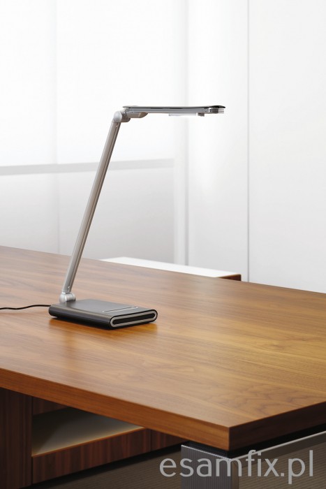 - klasyczna, dystyngowana lampka ze ściemniaczem - posiada wysokowydajną i nowoczesną żarówkę LED emitującą barwę „światła dziennego” (6500K) z indywidualną 7-stopniową regulacją natężenia światła - natężenie światła 2170 Lux z odległości 35 cm, 480 Lumen - cykl życia LED: ponad 20000 godzin - klasa energetyczna „A” (ważona konsumpcja energii 9 kW/1000 h) - 80% niższy pobór energii w stosunku do tradycyjnych rozwiązań - wykonana z anodowego aluminium - napięcie: 220-240 V - z możliwością regulacji w pionie o 180° i w poziomie o 300° - głowica: 23 x 5 cm - długość ramienia: 41 cm - wysokość robocza: 40 cm - długość przewodów przyłączeniowych: 1,9 m