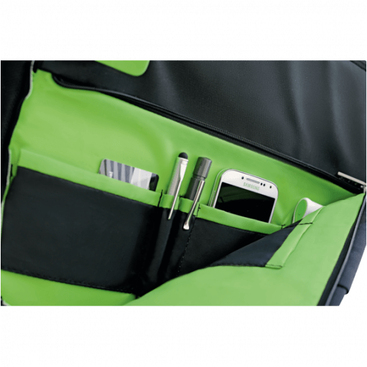 - wysokiej jakości lekka torba z dwiema przegródkami i kieszenią z przodu - wyróżniające się, efektowne wzornictwo, z wygodnym zamkiem błyskawicznym i eleganckimi metalowymi zapięciami - dostępna w 3 kolorach - miejsce na urządzenia mobilne, laptop 15,6" i dokumenty A4 - posiada usztywnione skórzane rączki, regulowany pas na ramię oraz uchwyt mocujący do wózków lotniskowych - wytrzymała torba z poliestru do codziennego użytku - przednia kieszeń pozwala na szybki dostęp do Twojego smartfona, paszportu, długopisu czy wizytówek - 19 kieszeni, w tym boczna kieszeń na butelkę lub parasol - w komplecie ściereczka do czyszczenia ekranu i uchwyt na klucze - oddzielna, odpinana kieszeń na ładowarki i kable - wygodne kieszenie z siatki na kable i inne akcesoria - usztywniana kieszeń na tablet lub ultrabook z podszewką z weluru chroniącą powierzchnie i ekrany urządzeń - ukryta tylna kieszeń na telefon, umożliwiająca połączenia przez słuchawkę - wymiary: 390 x 290 x 155 mm