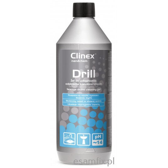 Żel do udrażniania odpływów kanalizacyjnych - żel do udrażniania rur i syfonów w instalacjach kanalizacyjnych - szybko rozpuszcza wszelkie stałe i organiczne zanieczyszczenia takie jak: tłuszcz, papier, watę, odpadki kuchenne - żelowa forma preparatu pozwala na osadzanie się go na ściankach rur przedłużając tym proces działania - preparat w stojącej wodzie osiada na dnie przez co szybko dociera do syfonu kanalizacyjnego - likwiduje nieprzyjemny zapach - nadaje się do udrażniania rur zarówno w kuchni jak i w łazience