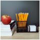 Metalowy przybornik na biurko służący do organizacji miejsca pracy.