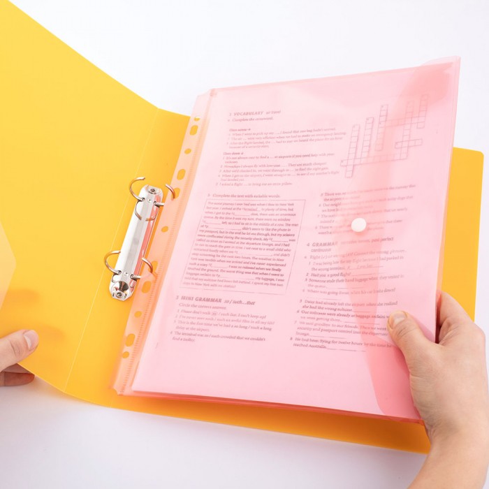 - Wyposażona w trwałe zamknięcie na zatrzask oraz uniwersalną perforacją umożliwiającą wpięcie do każdego typu segregatora.