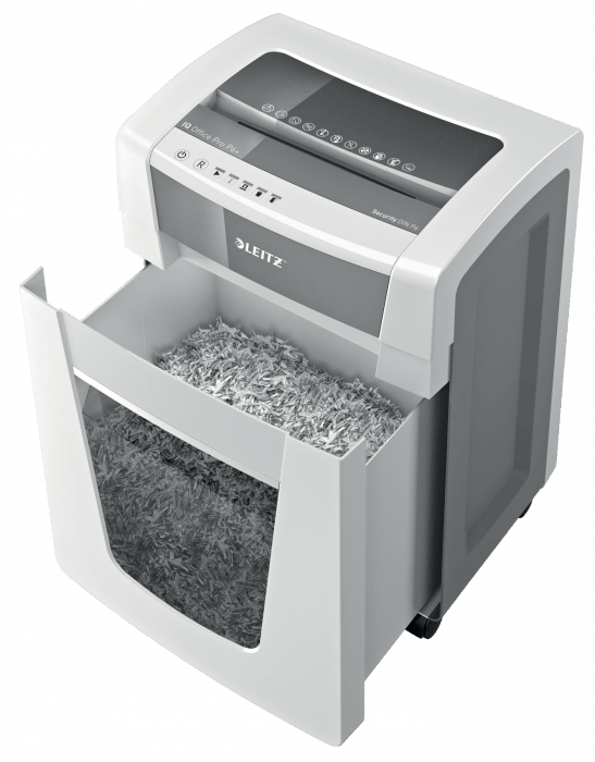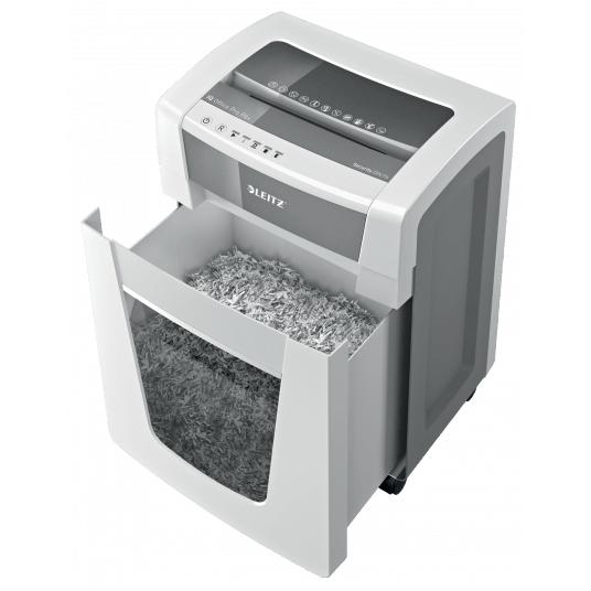 Duży, 30-litrowy pojemnik na ścinki - pomieści do 390 zniszczonych kartek, zanim wymagać będzie opróżnienia.