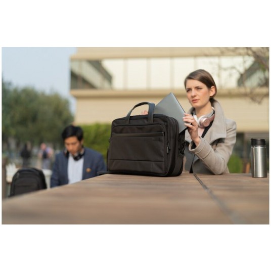Wygodna, bezpieczna, wytrzymała i stylowa torba Kensington Contour 2.0 Business na laptopa 15,6" to idealna, zatwierdzona przez ergonomistów torba na laptopa dla pracowników mobilnych. Ma wyprofilowany panel, który przylega do ciała, i gdy torba jest prawidłowo noszona, przesuwa ciężar tak, aby był bliżej środka ciężkości. Wygodna podczas kontroli TSA na lotniskach.