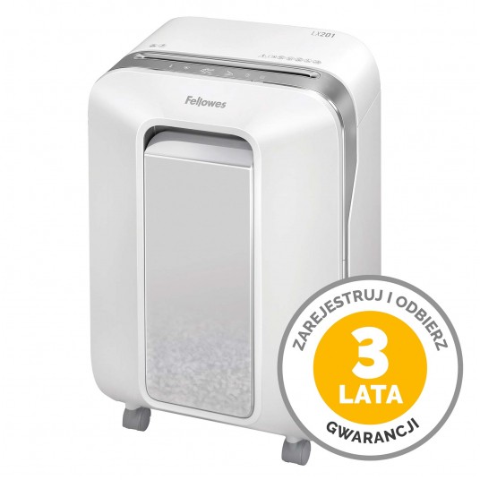 Niszczarka FELLOWES LX201, mikrościnki 2 x 12 mm biała, P5,T5