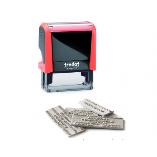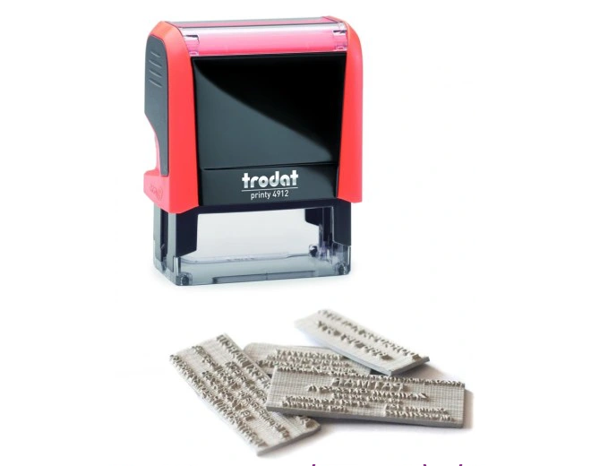 Kompletny zestaw gotowy do użycia, składa się z automatu Trodat, poduszki oraz gumki.