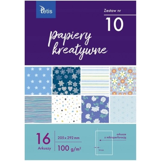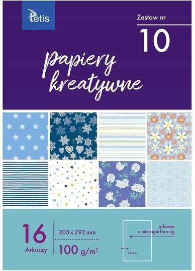 - Zestaw 16 jednostronnie zadrukowanych arkuszy ozdobnych.