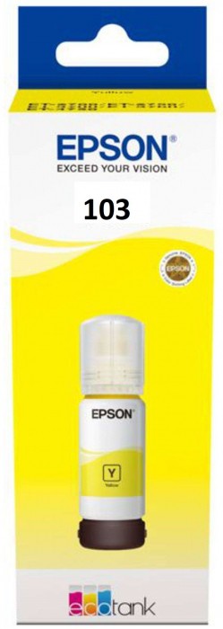 Oryginalny żółty tusz do drukarek Epson EcoTank L3110, Epson EcoTank L3111, Epson EcoTank L3150, Epson EcoTank L3151. Pojemność wynosi 65 ml, wydajność do 7500 stron zgodnie z normą ISO/IEC 24711.