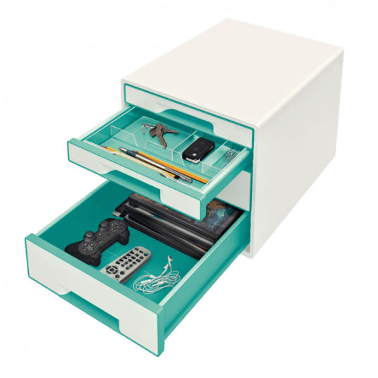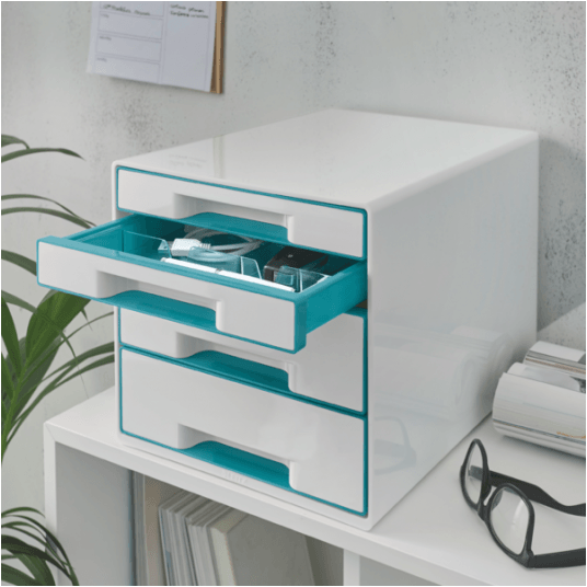 POJEMNIK Z 4 SZUFLADAMI LEITZ WOW CUBE KOLOR TURKUSOWY