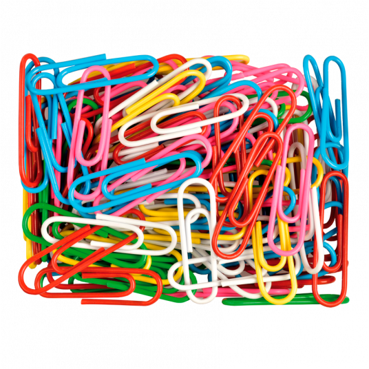 - Spinacze biurowe wykonane ze stali nierdzewnej pokryte kolorowym plastikiem.
