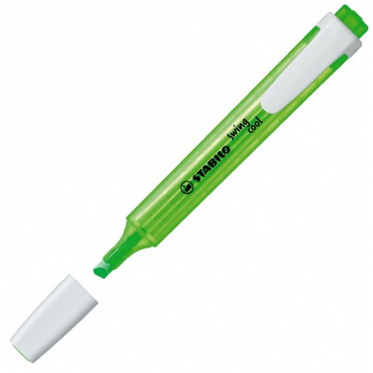 - STABILO swing cool - zakreślacz dla dzieci, młodzieży i osób które podróżują - Kieszonkowy format zakreślacza z praktycznym klipsem do zaczepiania sprawia, że nie zajmuje dużo miejsca więc można go zawsze mieć przy sobie (w torbie, piórniku, kieszeni) - Technologia Anti-Dry-Out sprawia, że pozostawiony bez skuwki nawet prze 4 godziny nie zasycha - Grubość linii 1-4 mm - Dostępny w 8 kolorach - Kolor zielony