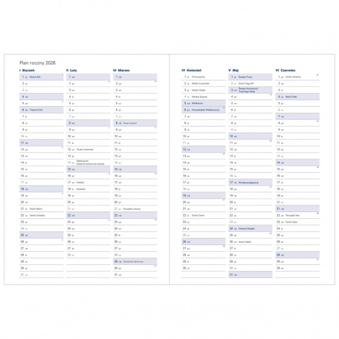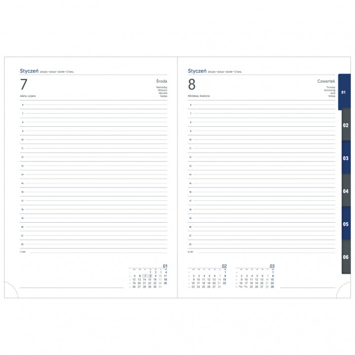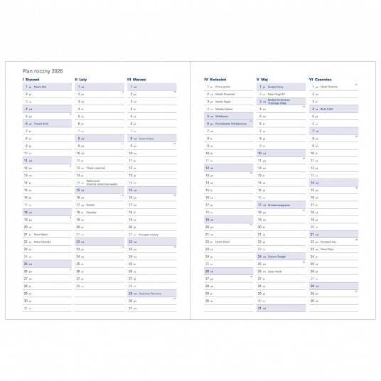 Terminarz książkowy zawiera: