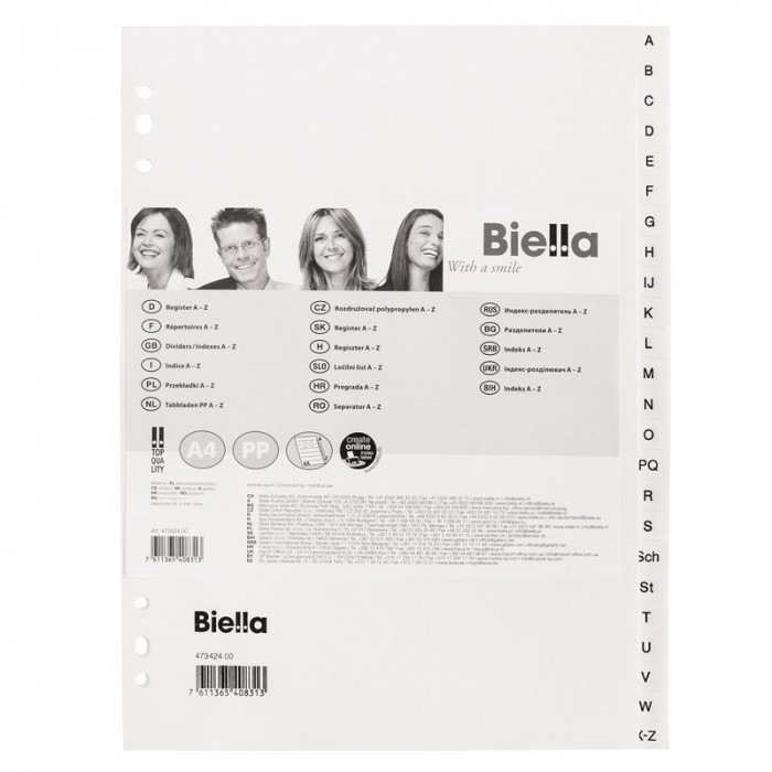 Przekładki BIELLA A4/A-Z 473424 białe ***UWAGA***Rabat ujęty w cenie***Do wyczerpania stanów magazynowych