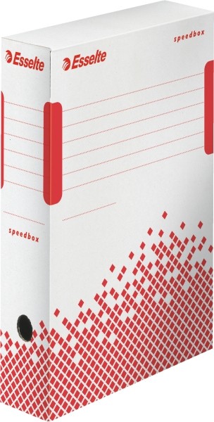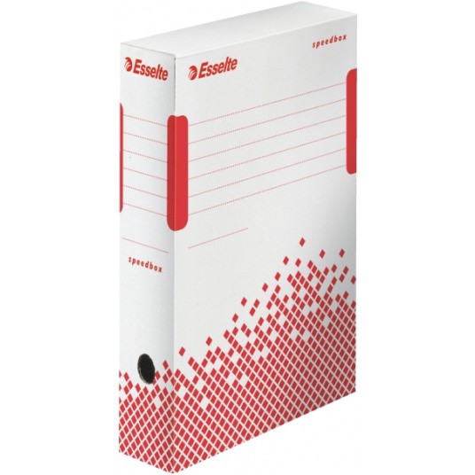 Pudła i kontenery Esselte Speedbox zapewniają oszczędność czasu i wysiłku. Posiadają automatycznie składane dno, co umożliwia szybką i intuicyjną pracę - od teraz złożenie pudła jest niezwykle proste i szybkie. Mają podwójne wieko zabezpieczające przed przypadkowym otwarciem oraz wzmocniony otwór na palec. Do przechowywania dokumentów w formacie A4, będących w koszulkach czy folderach. Wykonane z kartonu w 100% pochodzącego z recyklingu i w 100% nadającego się do ponownego przetworzenia, posiadają certyfikat FSC.