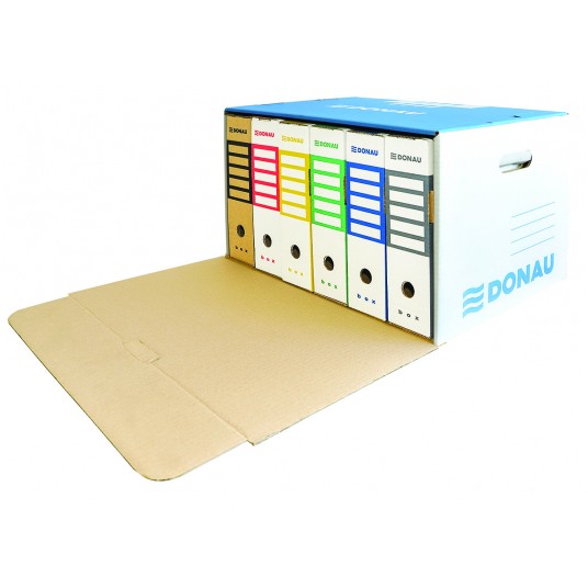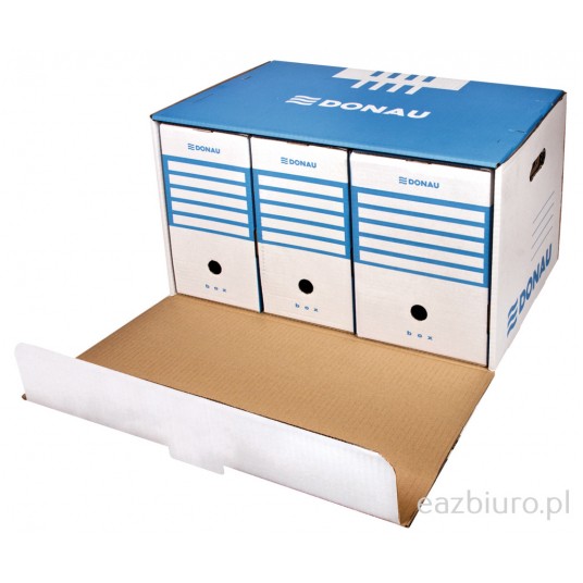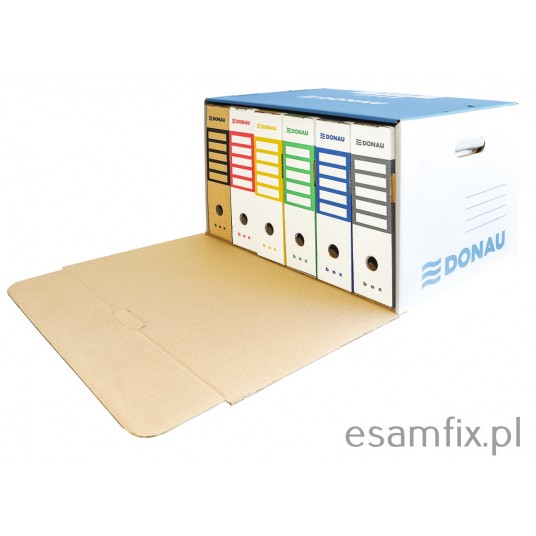 Pudło archiwizacyjne wzmocnione DONAU, karton, zbiorcze, przednie, niebieskie