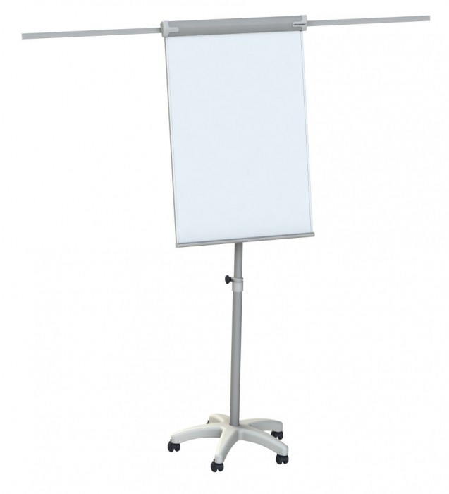 - flipchart IGNIS na plastikowych kółkach z blokadą (podstawa 5-ramienna) o wym. 68 x 105 x 220 cm - rozkładane, 2 metalowe ramiona zwiększające powierzchnię prezentacyjną - wygodna regulacja wysokości do 220 cm - tablica z wysokiej jakości stali lakierowanej na biało - dobre właściwości suchościeralne i magnetyczne - regulowany rozstaw haków z metalowym dociskiem papieru umożliwiający łatwe dostosowanie do różnych formatów - stabilna konstrukcja - stelaż metalowy w kolorze popielatym, rama plastikowa biała, półka na markery plastikowa popielata o długości 68 cm - flipchart przeznaczony do pisania markerami oraz zawieszania kartek za pomocą magnesów