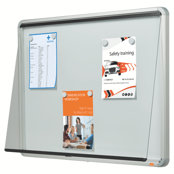 Jeżeli Twoje ogłoszenia wymagają zabezpieczenia, gabloty te będą idealnym rozwiązaniem. Przeznaczone do użytku zarówno w pomieszczeniach, jak i na zewnątrz. Wyposażone w szklany front o grubości 4 mm i zamek z kluczem - zapewniają bezpieczeństwo umieszczonych w nich informacji. Szklana gablota wewnętrzna. Magnetyczna. Format 9 x A4.