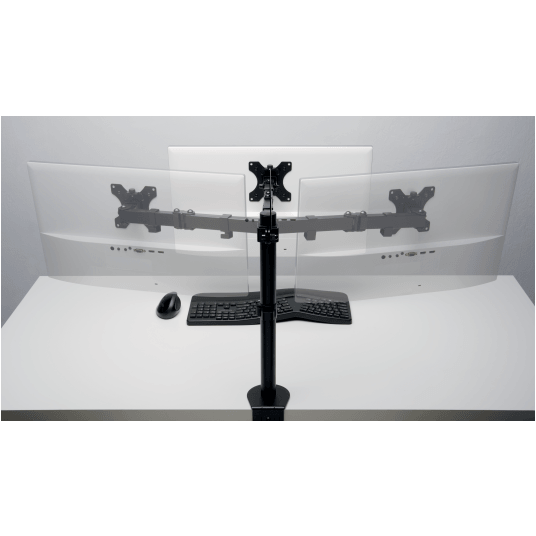 Łatwy montaż do krawędzi biurka przy użyciu zacisku typu C lub klamry oczkowej, wykonanych z wytrzymałej stali i aluminium.