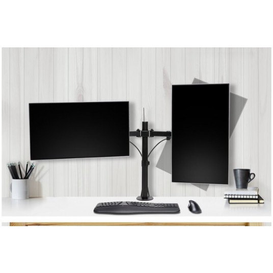Szeroki zakres regulacji: możliwość obracania o ±90°, zmiany orientacji o 180° (w pionie lub w poziomie) i regulacji kąta nachylenia monitora w zakresie ± 45°.