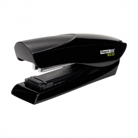 Opakowany w pudełko z recyklingowego kartonu. Wyposażony w opatentowaną technologię Super Flat Clinch zmniejszającą grubość zszywanych plików papieru o 40%. Zszywa do 25 kartek. Wykonany z plastiku uzyskanego z recyklingu. Opatentowana technologia Super Flat Clinch‚ redukuje wysokość zszywanych dokumentów o 40%.
