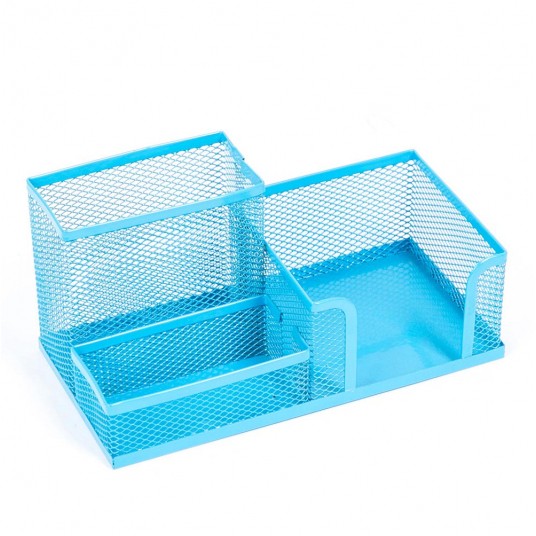 Wyposażony w 3 komory: 1 komorę na artykuły piśmienne, 1 komorę na karteczki oraz 1 na drobne akcesoria biurowe np. spinacze, zakładki, korektory.