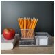 Metalowy przybornik na biurko służący do organizacji miejsca pracy.