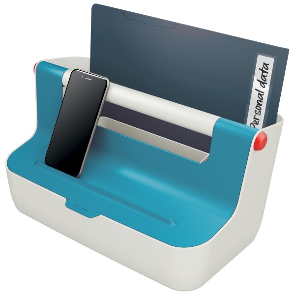 Pojemnik z uchwytem Leitz Cosy Dzięki Leitz Cosy poczujesz się jak w domu wszędzie tam, gdzie zaprowadzą Cię obowiązki zawodowe. Dzięki minimalistycznemu wzornictwu i zachęcającym kolorom możesz dodać stylu i elegancji do swojego miejsca pracy. Przenośny pojemnik do przechowywania Leitz Cosy to wszechstronny produkt, który może być używany jako pojemnik na biurko lub organizer do pokoju konferencyjnego, biura, domu. Ten najwyższej jakości produkt jest idealnym dodatkiem do domu lub biura, zapewniając relaks i produktywność przez cały dzień. Pojemnik z uchwytem może być używany jako schowek na biurko lub organizer do pokoju konferencyjnego, biura, domu. Atrakcyjne kolory i minimalistyczne wzornictwo. pojemnik z uchwytem, pojemnik na dokumenty, pojemnik na drobiazki, pojemnik do rpzechowywania, przenośny pojemnik Lekki i łatwy do przenoszenia dzięki solidnemu wzmocnionemu uchwytowi Zasłania zawartość, aby zapewnić schludny wygląd i większą prywatność Dodatkowe przegrody dla lepszej organizacji i szybkiego dostępu do przyborów, szeroka część z tyłu do przechowywania dokumentów A4 Z przegrodą do przechowywania smartfona/tabletu, podczas gdy urządzenie jest w zasięgu wzroku Wykonany z trwałego materiału ABS, odpornego na codzienne użytkowanie, łatwy do czyszczenia Pojemny i zajmujący mało miejsca, pasujący do wielu szafek Opakowanie bez plastiku W kolekcji Leitz Cosy znajdziesz produkty łączące najwyższą jakość z komfortem, jaki zapewnia domowy styl.