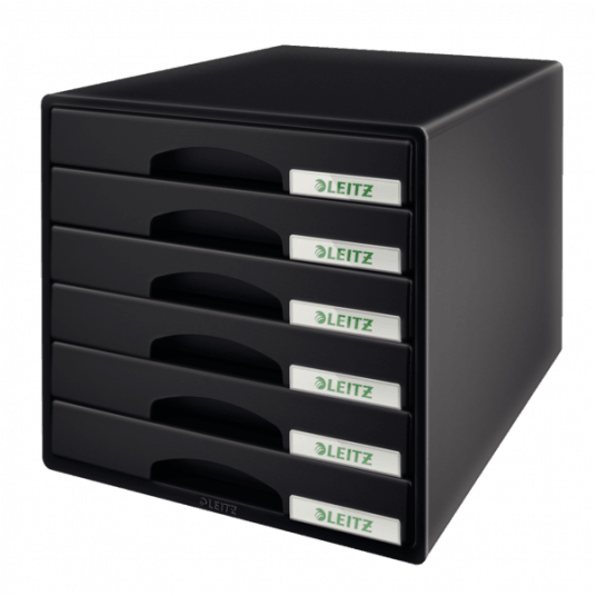 Atrakcyjny, mocny pojemnik do przechowywania dokumentów, artykułów biurowych, itp. Wzornictwo i kolorystyka spójna z linią produktów na biurko Leitz Plus. Wyposażony w 6 szuflad (6 małych). Format A4 Maxi.
