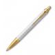 Subtelny wygląd długopisu to efekt połączenia rzadko spotykanego koloru pióra, czyli koloru perłowego z delikatnymi zdobieniami ze złota oraz z cyzelowanym wzorem w kratkę.
