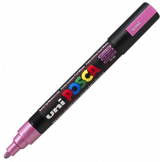 Uniwersalny marker UNI PC-5M z farbą plakatową do pisania i malowania po każdej powierzchni: papierze, tkaninie, plastiku, terakocie, szkle, porcelanie, metalu, drewnie.