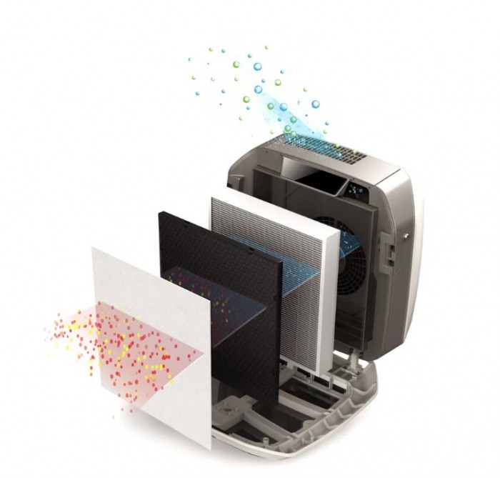 Filtr True HEPA: przechwytuje 99,97% unoszących się w powietrzu cząstek stałych (tak małych jak 0,3 mikrona) w tym smog (pyły PM2.5, PM10, benzopireny i inne), alergeny, zarazki, wirusy, bakterie i zarodniki pleśni. Powłoka antybakteryjna w filtrach True HEPA redukuje rozwój bakterii i grzybów w filtrze.