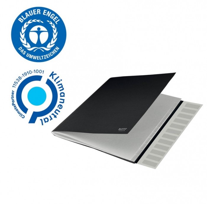 Najwyższej jakości teczka z 12 przekładkami wytowrzona z materiałów pochodzących z recyklingu, odpowiedni do formatu A4.