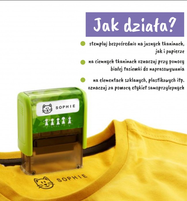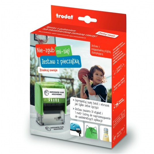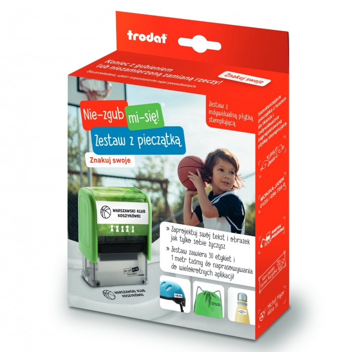Pieczątka Trodat Nie-zgub Mi-się umożliwia błyskawiczne znakowanie wszystkich przedmiotów, chroniąc je tym samym przed zgubieniem lub przypadkową zamianą.