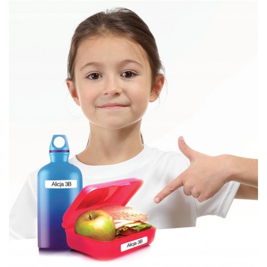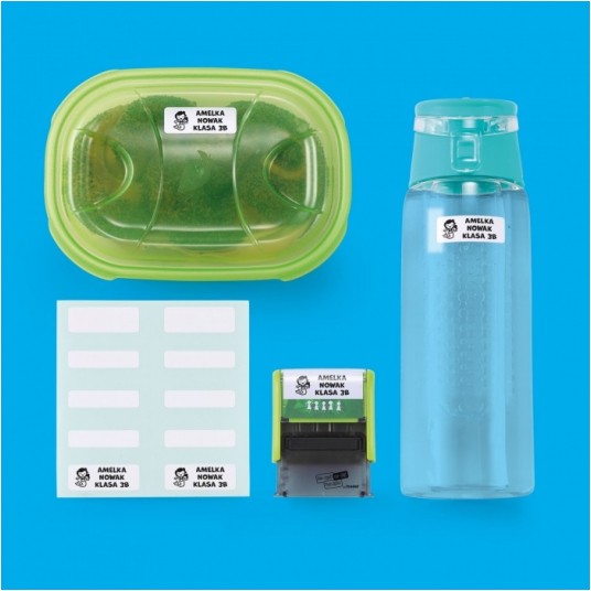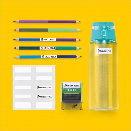 - 30 naklejek w jednym rozmiarze: do znakowania gładkich i śliskich powierzchni. Odbij pieczątkę na etykiecie i przyklej na co tylko zechcesz!