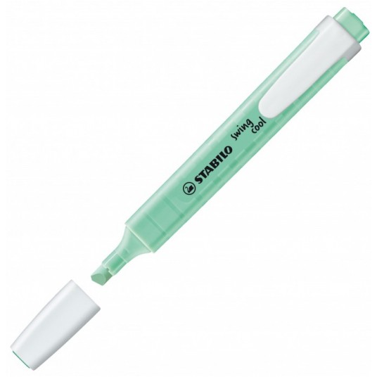 - STABILO swing cool Pastel - zakreślacz dla dzieci, młodzieży i osób które podróżują w modnych, pastelowych tonacjach - Kieszonkowy format zakreślacza z praktycznym klipsem do zaczepiania sprawia, że nie zajmuje dużo miejsca więc można go zawsze mieć przy sobie (w torbie, piórniku, kieszeni) - Technologia Anti-Dry-Out sprawia, że pozostawiony bez skuwki nawet prze 4 godziny nie zasycha - Grubość linii 1-4 mm - Dostępny w 6 pastelowych kolorach - Kolor pastelowy zielony