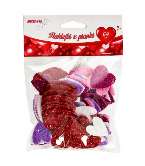 NAKLEJKI Z PIANKI SERCA 64 SZTUKI BREWIS